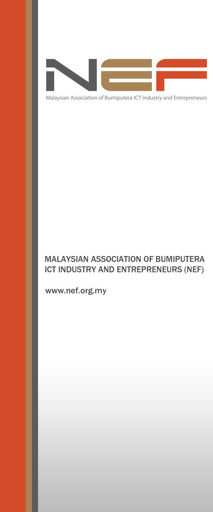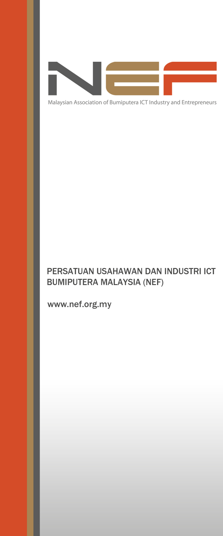 Persatuan Industri dan Usahawan ICT Bumiputera Malaysia (NEF) ditubuhkan untuk menyokong usahawan Bumiputera dalam industri ICT dan Kreatif dengan membantu mereka mengembangkan perniagaan berasaskan teknologi. Sejak penubuhannya, NEF telah memberi tumpuan untuk menjadi platform kepada usahawan-usahawan ini melalui pelaksanaan program dan inisiatif yang memberikan mereka peluang untuk berjaya dalam industri tersebut.